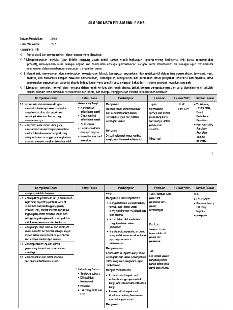 Silabus k13 fisika sma kelas x,xi,xii revisi terbaru.
