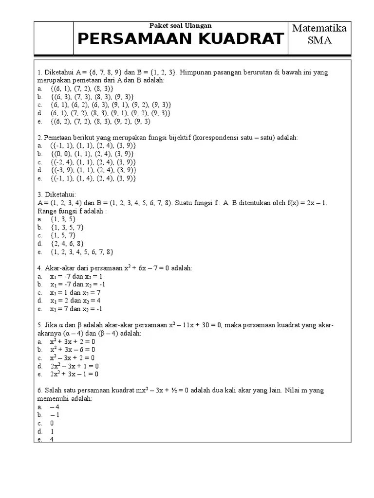 992020 soal pilihan ganda persamaan kuadrat smp kelas 9 kurikulum 2013 09 sep 2020 posting komentar kumpulan soal soal disertai pembahasannya tentang materi persamaan kuadrat dan fungsi kuadrat yang terdiri dari 25 soal pilihan ganda dan 5 soal essay. Matematika kelas 9 menyelesaikan persamaan kuadrat. Mar 07, 2021 · soal matematika kelas 7. Fungsi kuadrat bentuk umum fungsi kuadrat bentuk umum fungsi kuadrat adalah fx ax2 bx c y ax2 bx c dengan a 0 dan abc bilangan real. Softgaleri adalah blog yang berbagi informasi download rpp kkm panduan rpp program tahunan program semester dan sd kd dan semua mata pelajaran untuk smp mts pendidikan dan guru rpp kurtilas aplikasi dan administrasi guru yang mana file berikut ini adalah.