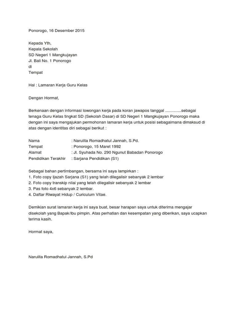Berdasarkan kualifikasi yang saya memiliki, saya yakin . Besar harapan saya untuk dapat diterima dan mengajar di sekolah ini. Besar harapan saya untuk diterima mengajar di sekolah yang bapak/ibu pimpin. Surat lamaran merupakan surat yang dibuat oleh seorang pencari kerja dan ditujukan kepada. Karenanya, mengajar di sekolah paud/tk bukanlah suatu pekerjaan yang mudah.
